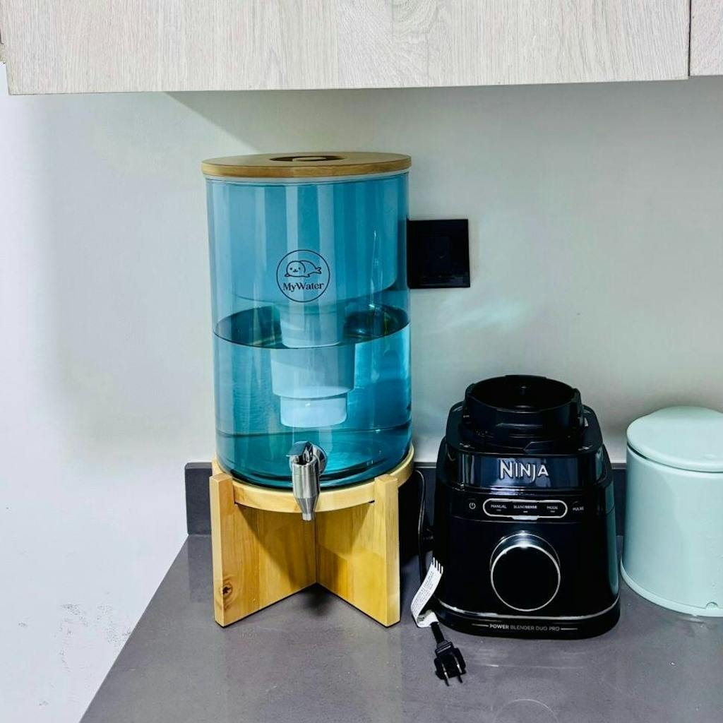 Transforma tu agua (rural o urbana) y tu cocina con nuestro filtro purificador en vidrio y base de madera de pino.