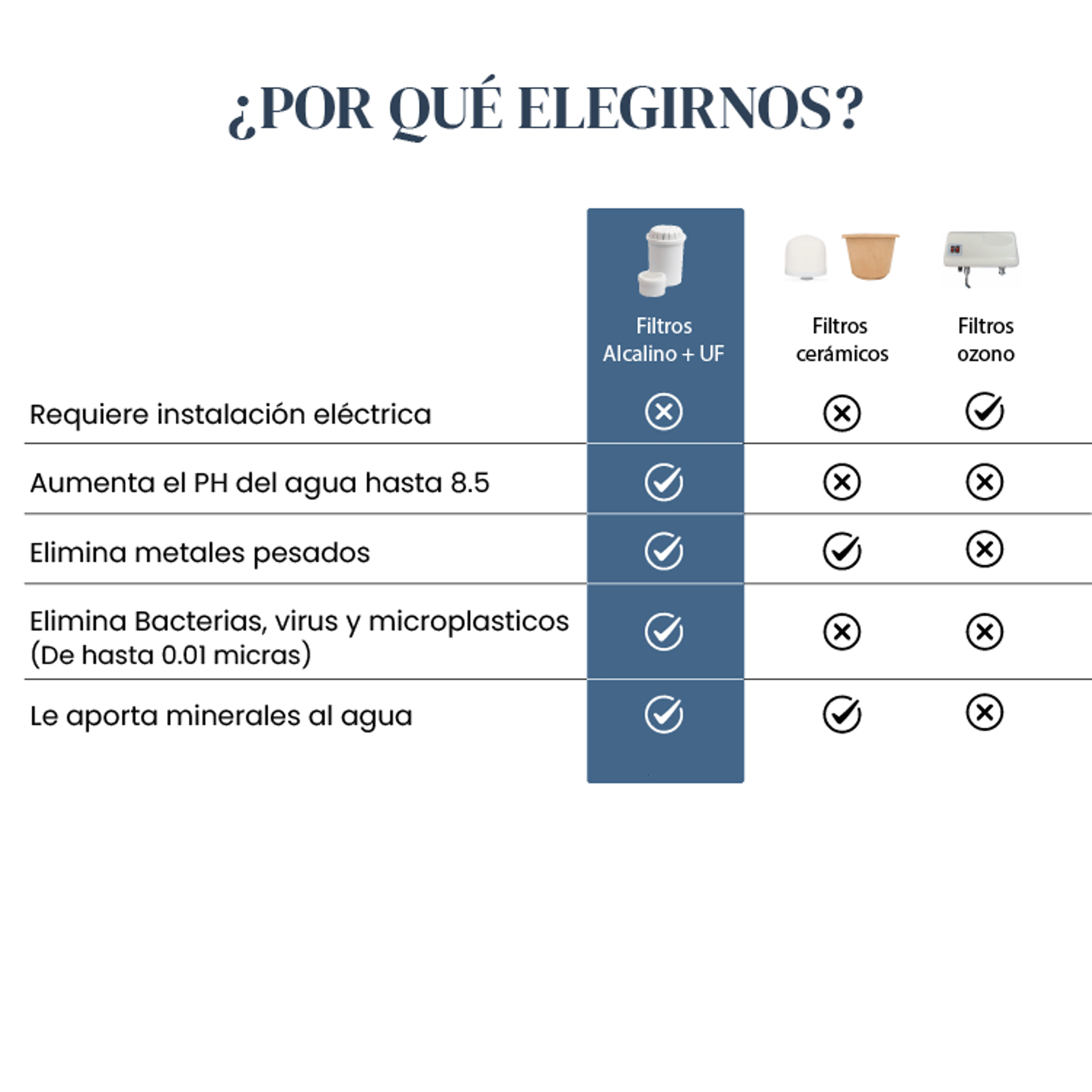 Agua segura, libre de bacterias, cloro y metales pesados
